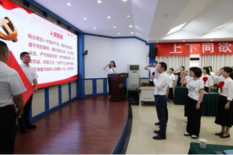 黨委書記、執(zhí)行董事胡彬領(lǐng)誓,全體黨員重溫入黨誓詞。